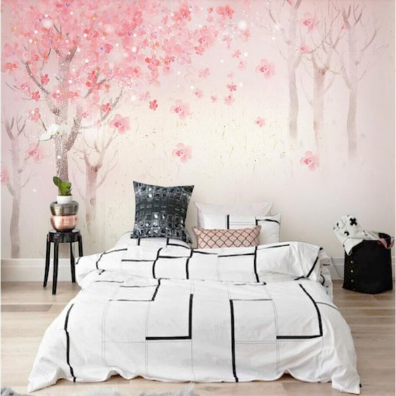 3d Photo Wallpaper Pink Romantic Cherry Blossoms Tree Living Room